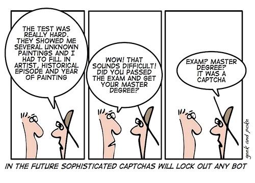 Van mij mogen de goeden wel wat minder lijden onder de slechten. Veel CAPTCHAS voelen voor mij als de poortjes bij Schiphol sinds de verstrenge controles. Op zich is het prima om het kwaadwilligen niet te makkelijk te maken, maar maak dan in ieder geval van het poortje een leuke glijbaan of iets dergelijks. Of pik alleen de ongure types eruit zoals Mollom dat doet. Alternatieven genoeg, nu alleen nog Steam op de hoogte brengen.