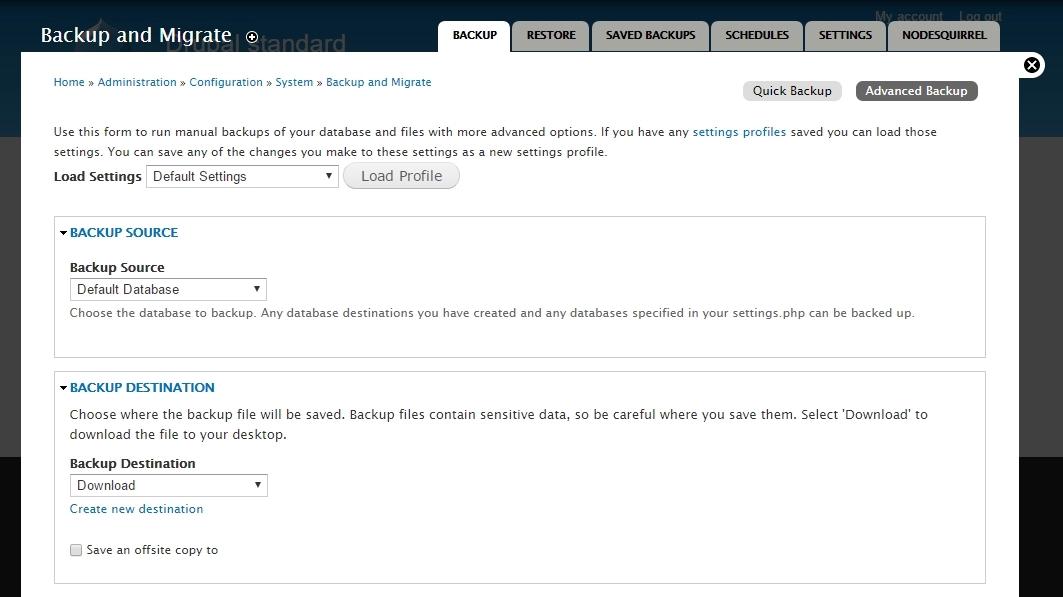 Backup and Migrate-module