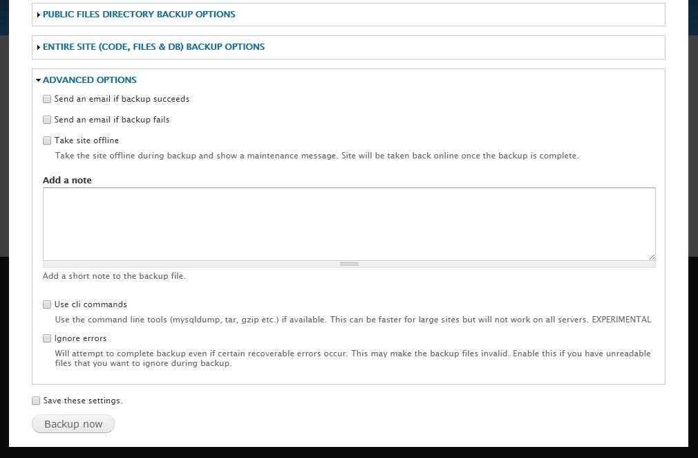 Een andere methode is de Backup and Migrate-module. Deze module installeer je binnen Drupal en beheer je vanuit je Drupal website. Een groot voordeel is dan ook dat je geen externe applicaties nodig hebt. Daarnaast biedt de Backup and Migratie-module ontzettend veel mogelijkheden.
