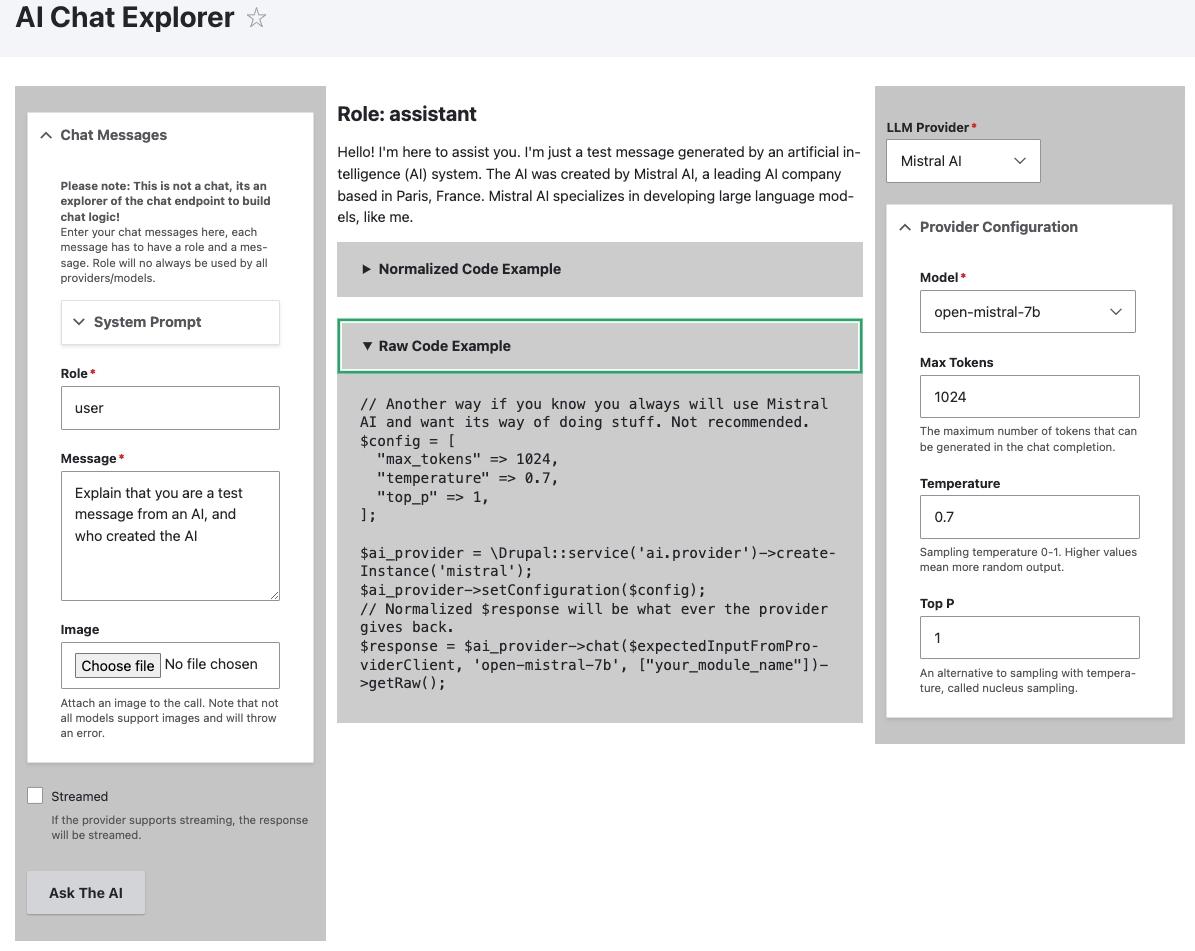 Dat AI geen startpunt maar een toevoeging is, zie je ook terug in Drupal zelf. Er is namelijk een officiële Drupal AI-module. Niet als experimentele gimmick, maar als een technisch framework waarmee organisaties AI kunnen integreren in hun Drupal-platform.