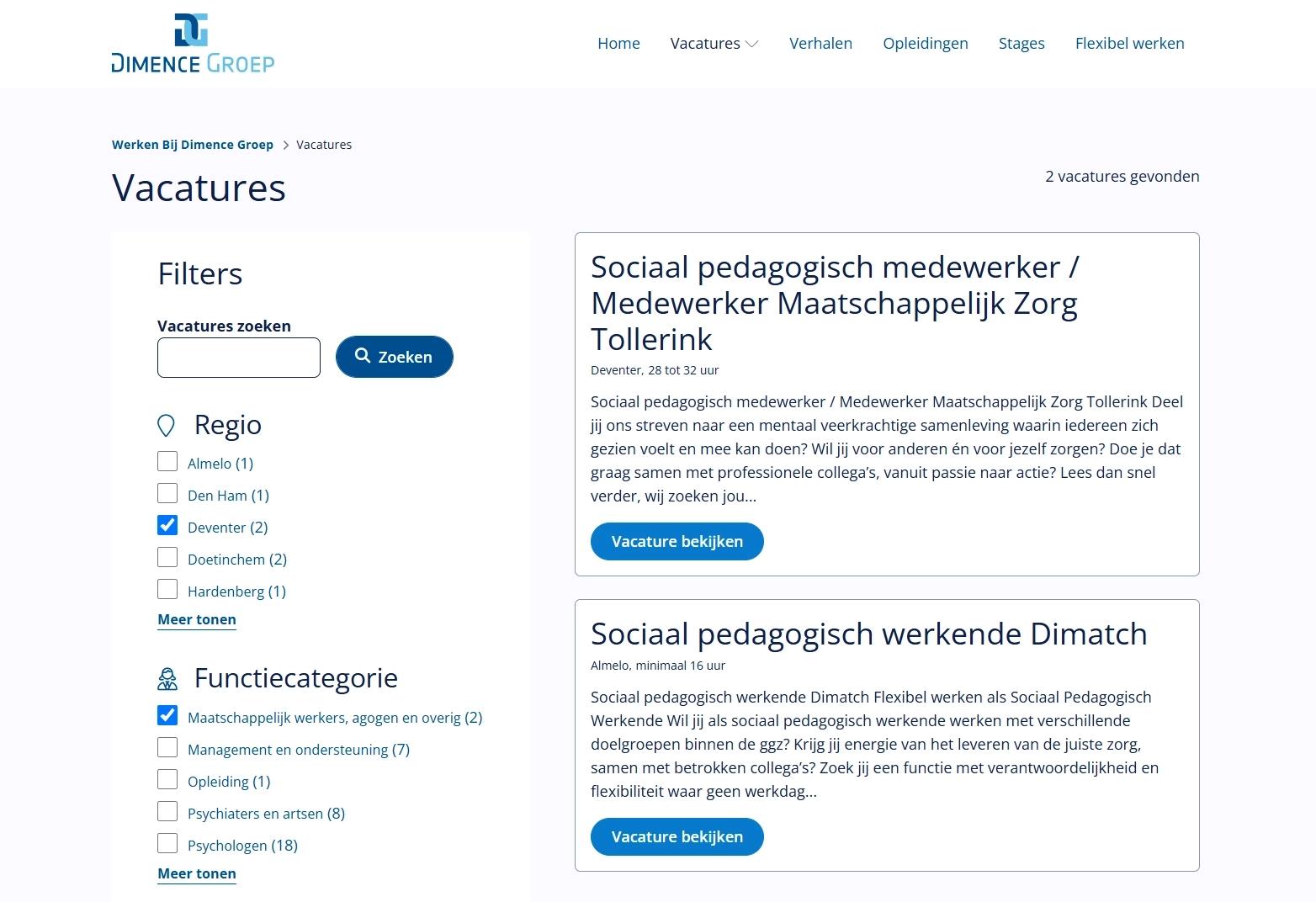 - Gebruiksvriendelijkheid en vindbaarheid van vacatures: Met tools zoals zoekopties en filters (bijvoorbeeld op opleidingsniveau of locatie) kunnen kandidaten snel vinden wat ze zoeken. Hierdoor is de kans groter dat geschikte kandidaten daadwerkelijk solliciteren.