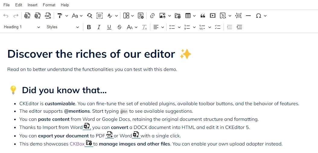 Bovendien biedt CKEditor 5 nu ondersteuning voor Markdown-sneltoetsen, waardoor gebruikers snel formatteertags kunnen toepassen zonder hun handen van het toetsenbord te halen. Deze toevoeging is een groot voordeel voor content editors die gewend zijn aan Markdown en het bewerken van content willen versnellen.